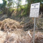 Lungo la transitatissima via del quartiere, nel tratto che corre lungo la superstrada, degrado e sporcizia dopo il taglio della vegetazione. In terra c'è di tutto: bottiglie di vetro e di plastica, indumenti, gomme di automobile, taniche, etc...