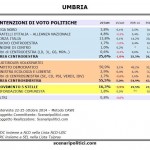 Il sito scenaripolitici.com mostra in un grafico le preferenze di voto degli umbri e offre un'anticipazione di quello che potrebbe accadere a marzo. Il Centro Sinistra sfiora il 55%, il Centro Destra si conferma al 25,5%. Crollo del M5S