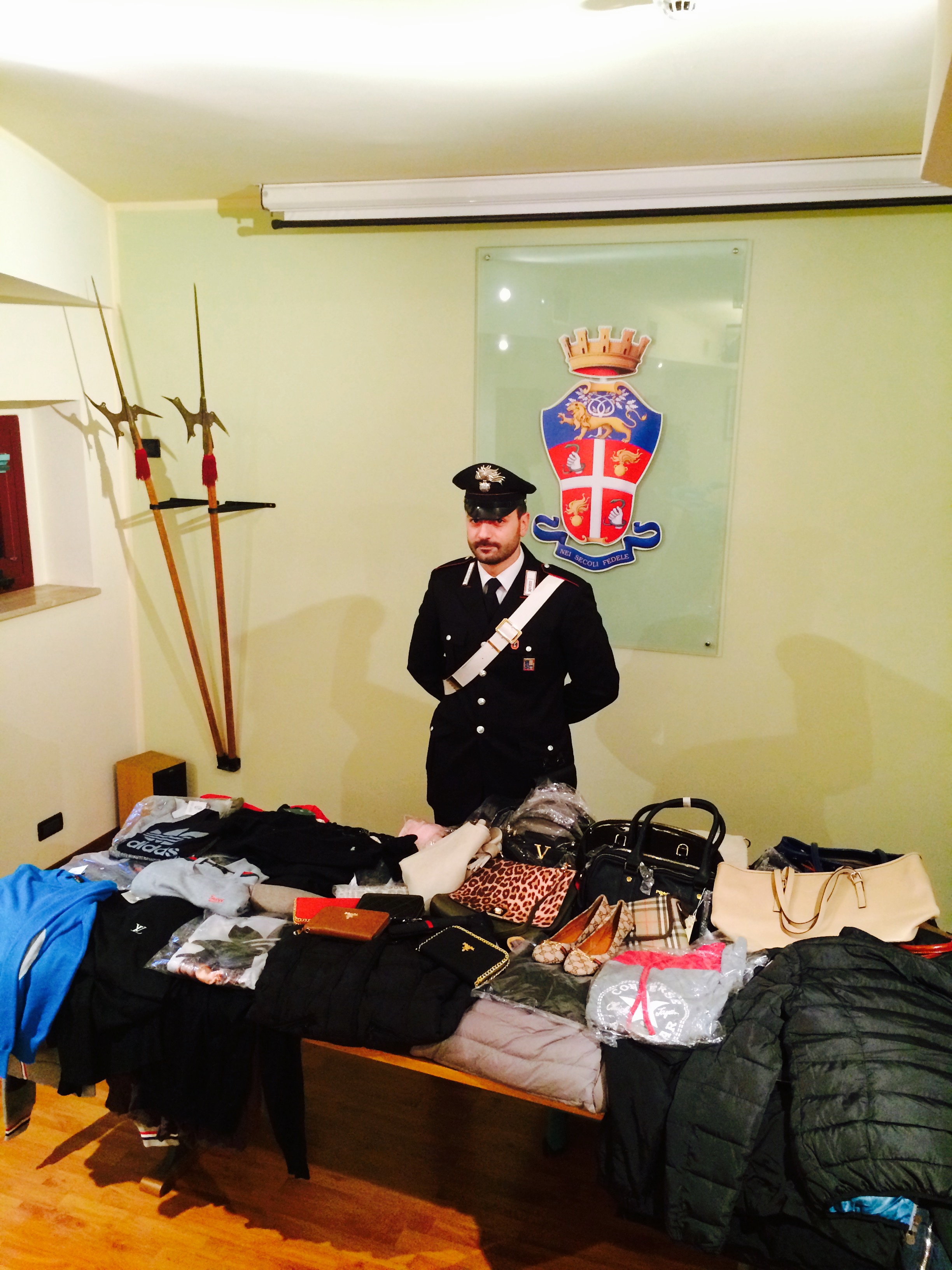I controlli – Le attività scaturite nel corso degli ordinari servizi di controllo del territorio dei militari, hanno consentito di intercettare due venditori ambulanti che a piedi percorrevano le vie del centro cittadino trasportando un grosso borsone di tela. Fermati dai militari per essere sottoposti ad un controllo, i due stranieri sono riusciti in un primo tempo a darsi alla fuga. Tuttavia, tornati in secondo momento lungo le vie affollate del centro, pensando forse di averla fatta franca, i due malfattori sono stati sorpresi alle spalle dai carabinieri che, dopo essersi posti sulle loro tracce, sono riusciti a bloccarli definitivamente. I militari hanno così rinvenuto nel borsone trasportato dai due diversi capi di abbigliamento e accessori vari riportanti marchi ‘griffati’ di note case produttrici, risultati essere tutti contraffatti.