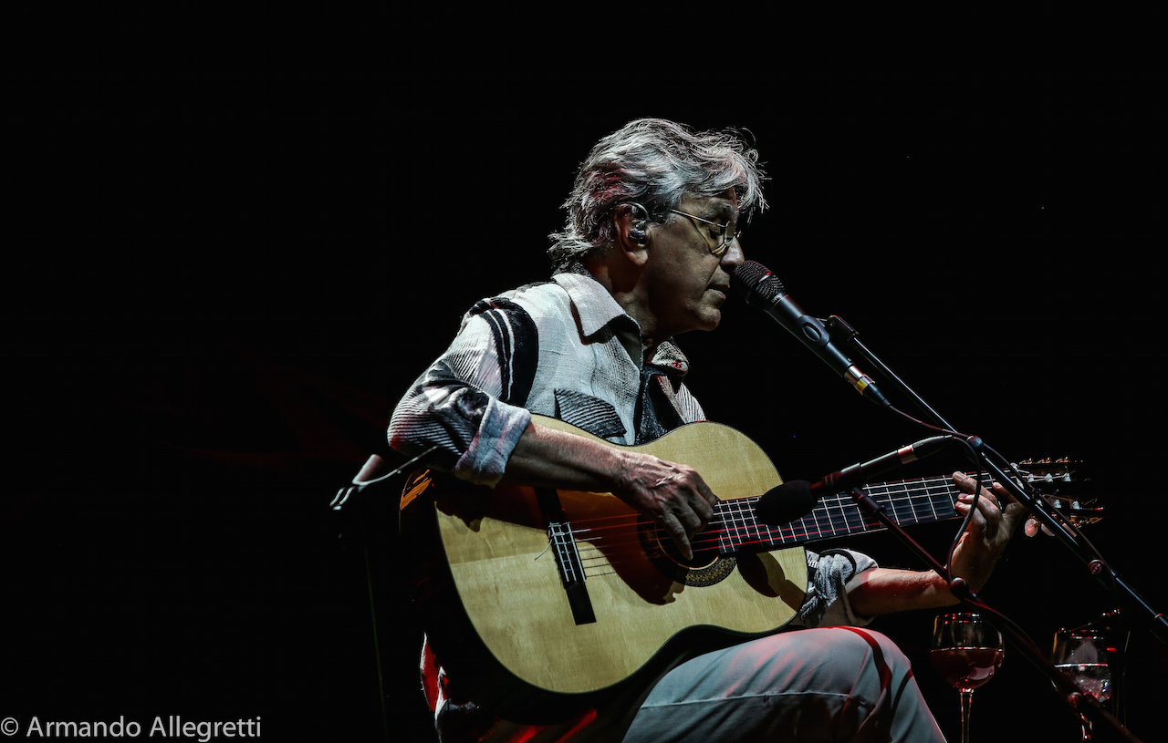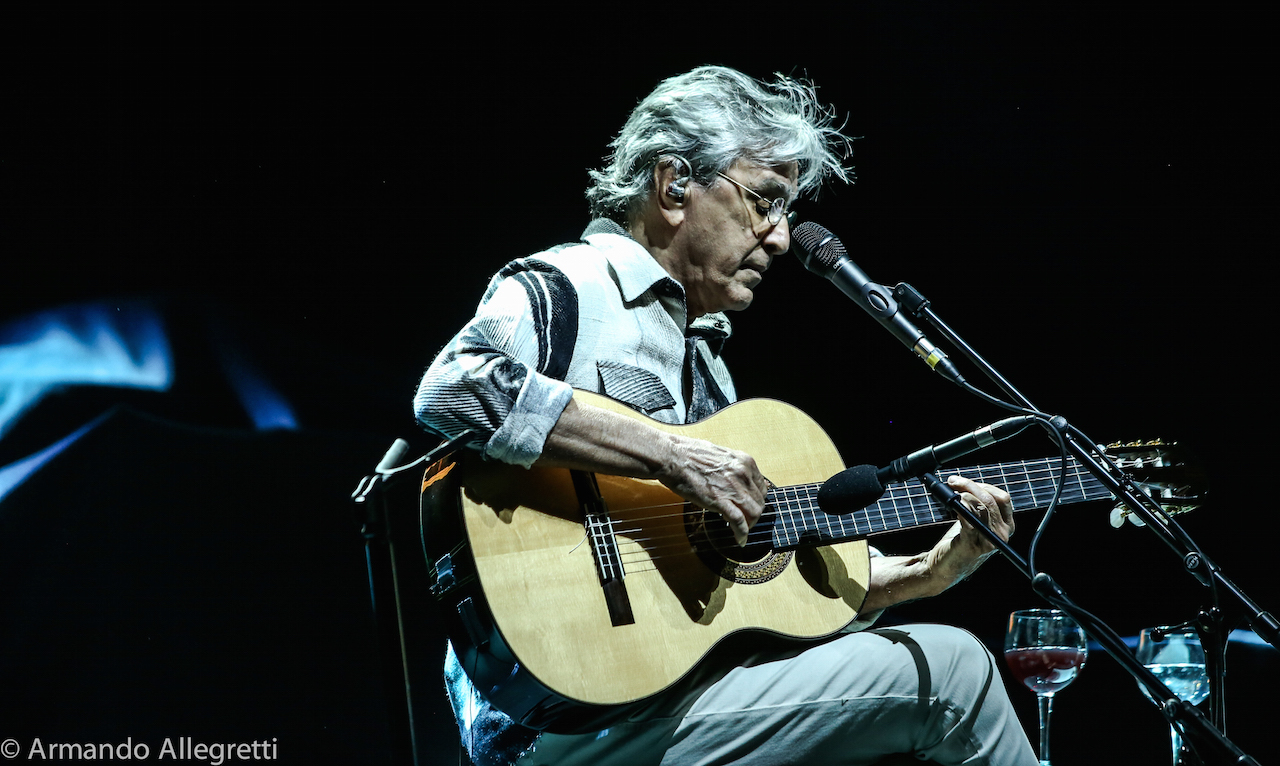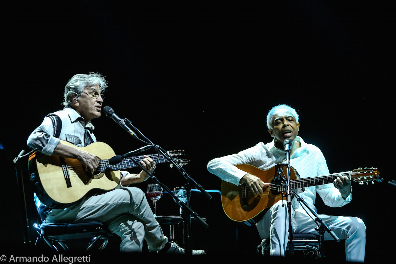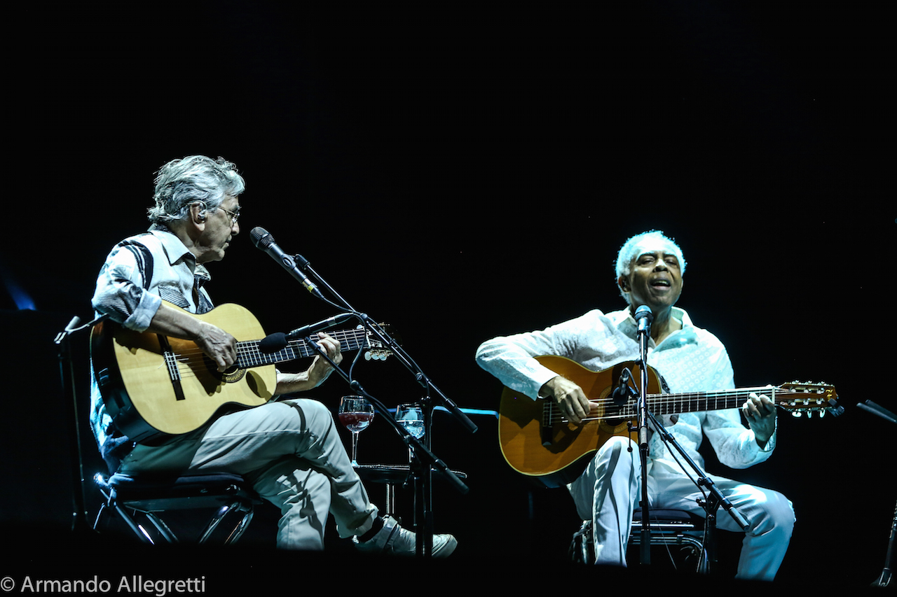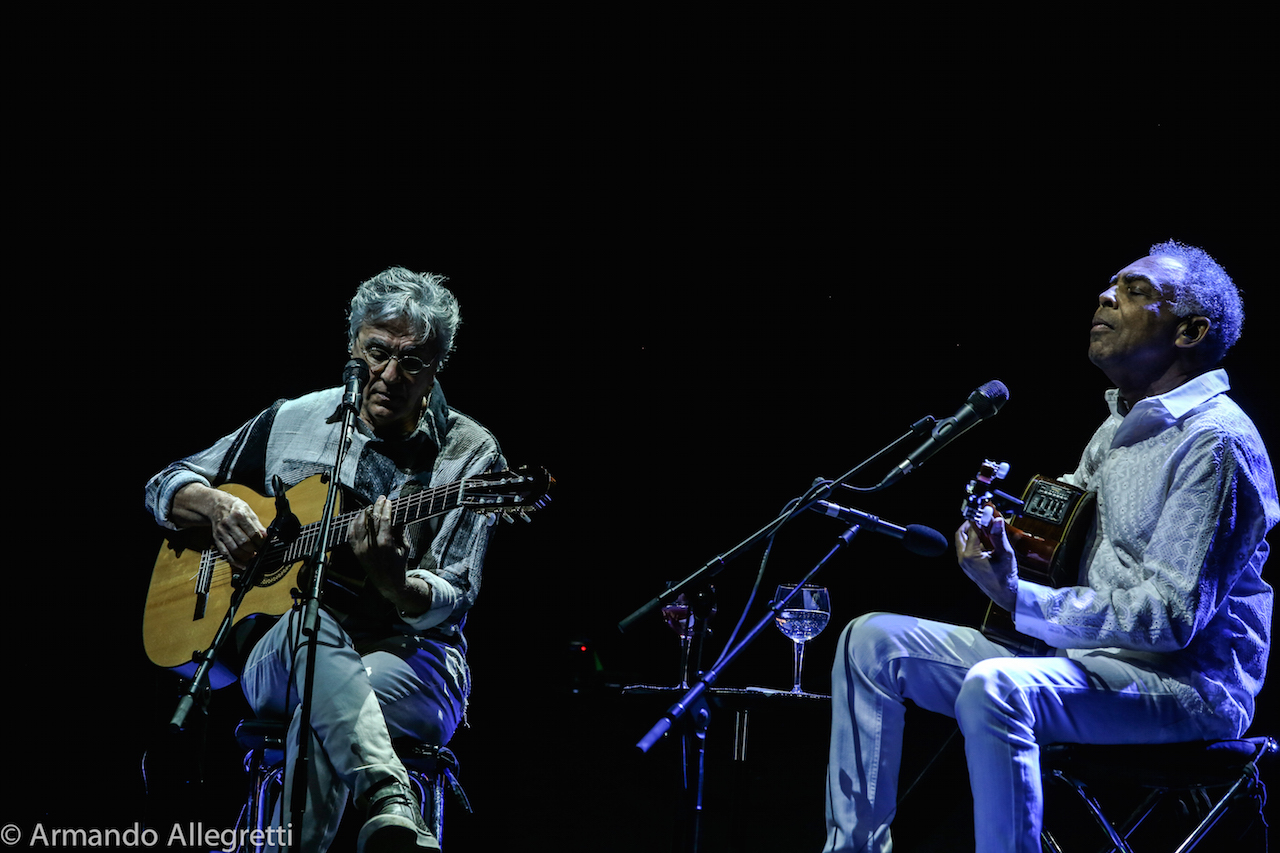 Lo spettacolo. Veloso e Gil con le loro chitarre a cantare insieme alcune delle canzoni che hanno fatto la storia della musica popolare brasiliana ed altre più recenti. In scaletta piccoli gioielli che chi ama la musica brasiliana ha sentito mille volte ma che suonate solo con chitarre acustiche, si rivelano nel loro valore squisitamente compositivo. Questi alcuni titoli: Coracao vagabundo, E’ luxo so’, Sampa, Terra, Tonada de luna llena, Esoterico, Tres palabras, Drao, Toda menina baiana, Sao Joao Xango. Omaggio all’Italia con “Come prima” di Domenico Modugno.