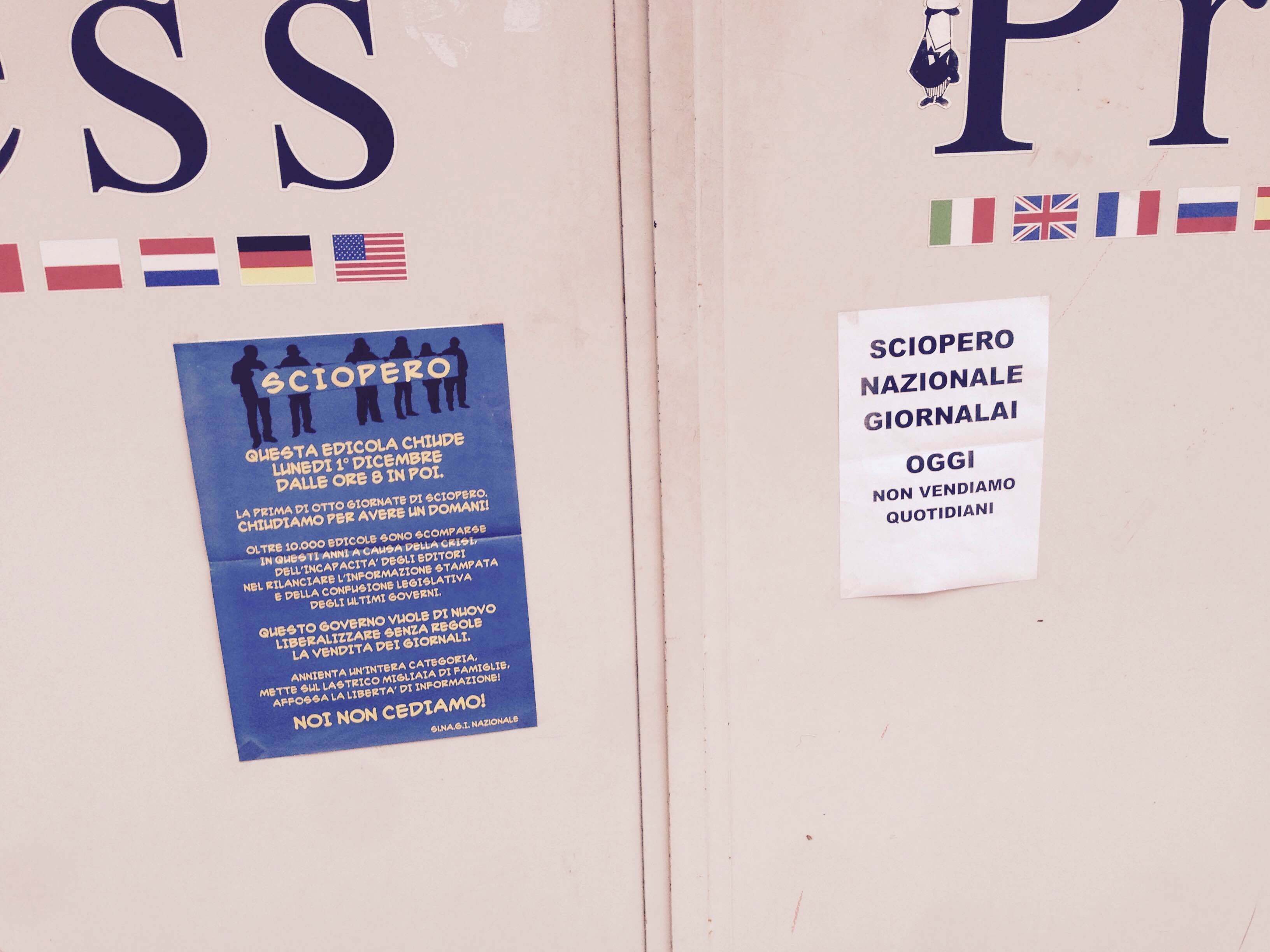 La prima di otto giornate di sciopero per protestare contro il Governo che vuole di nuovo liberalizzare senza regole la vendita dei giornali