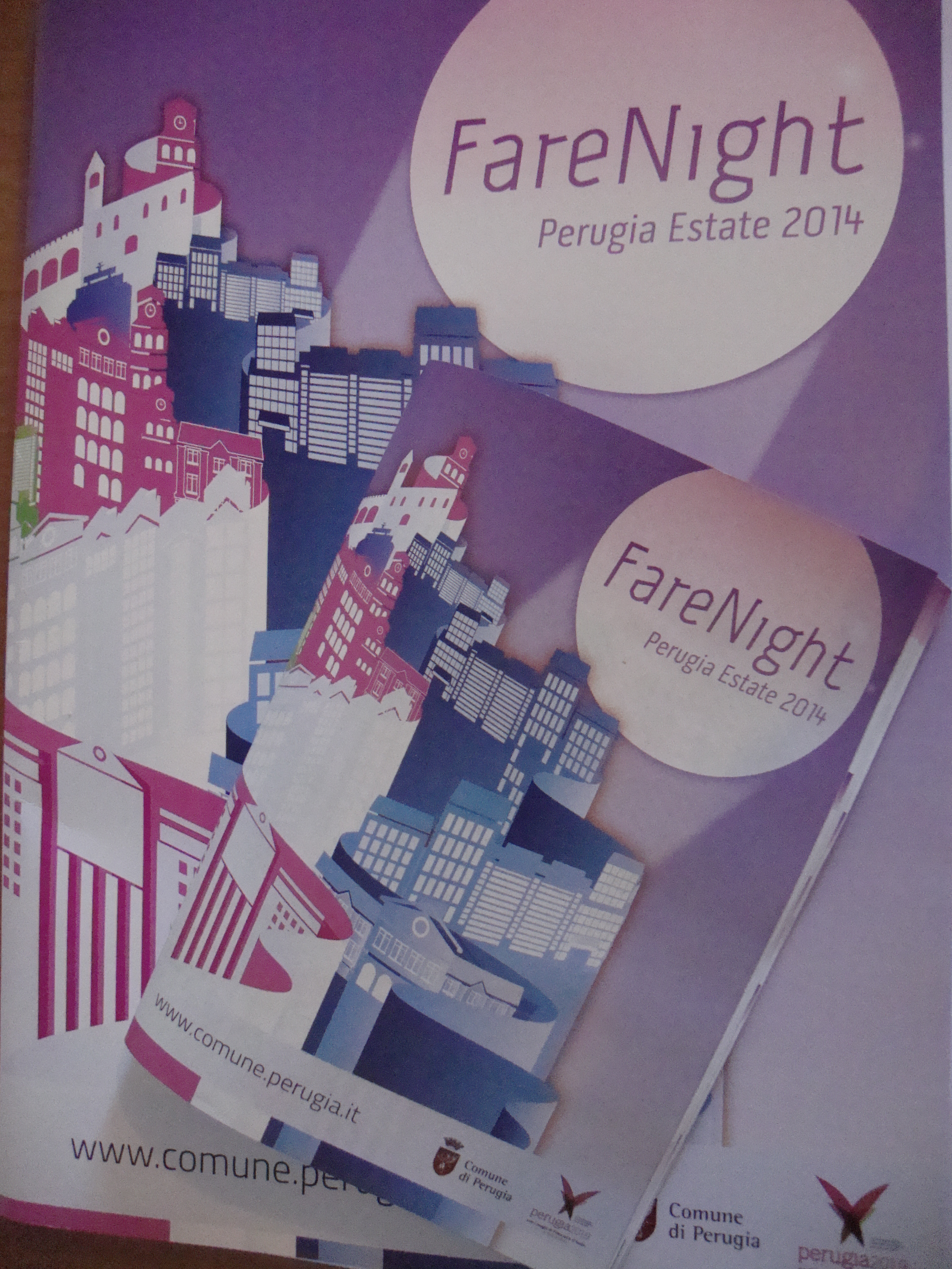 Il programma – È stato presentato questa mattina a Palazzo dei Priori in una affollata conferenza stampa dell’ assessore alla cultura, Teresa Severini, alla quale hanno partecipato anche molti operatori culturali. Ben 168 gli eventi previsti che si svolgeranno prevalentemente nel centro storico, location ideale di intrattenimento, ma anche nei quartieri per riscoprire diversi spazi della città come ad esempio Piazza del Bacio con eventi musicali stile anni 80, un’area che si fa ancora fatica a recuperare nonostante numerosi tentativi. Molti altri eventi si svolgeranno anche fuori dal centro, con iniziative a Strozzacapponi, nella biblioteca di Villa Urbani in Via Pennacchi, Piazza del Bacio, Ponte San Giovanni (Velimna, gli Etruschi del Fiume), Ponte d’Oddi, San Marco (il Fuseum),  Mugnano. Eventi, mostre, cinema d’autore, danza, spettacoli teatrali, concerti, scienza e una speciale sezione dedicata ai bambini, questi gli ingredienti del grande contenitore di FareNight per perugini e turisti che verranno a visitarci. Un cartellone di proposte di qualità pensato, nelle intenzioni dell’ Amministrazione comunale, “come un corale slancio di ottimismo e di propositività che, a partire dal Comune, coinvolge una pluralità di protagonisti vecchi e nuovi della scena culturale cittadina, uniti anche dall’ambizione di conseguire il titolo di Capitale Europea della Cultura 2019”. Un cartellone che, per tematiche e linguaggi, è rivolto a ogni tipologia di utenti. Costo complessivo, 30 mila euro.