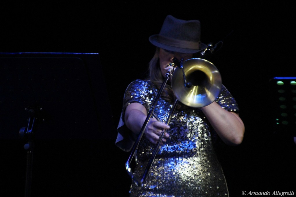 La trombonista americana è annoverata tra i migliori trombonisti attualmente sulla scena musicale, col suo tocco animato e potente, incurante di ogni classificazione di genere. Artista spettacolare con una gamma molto ampia, un bel tono, e la capacità di fondere insieme molte influenze nel suo stile. Ieri sera anche lei ha dimostrato di essere un performer estroverso capace di incantare il pubblico con un “trombone magico” per trascinarlo nella sua musica.