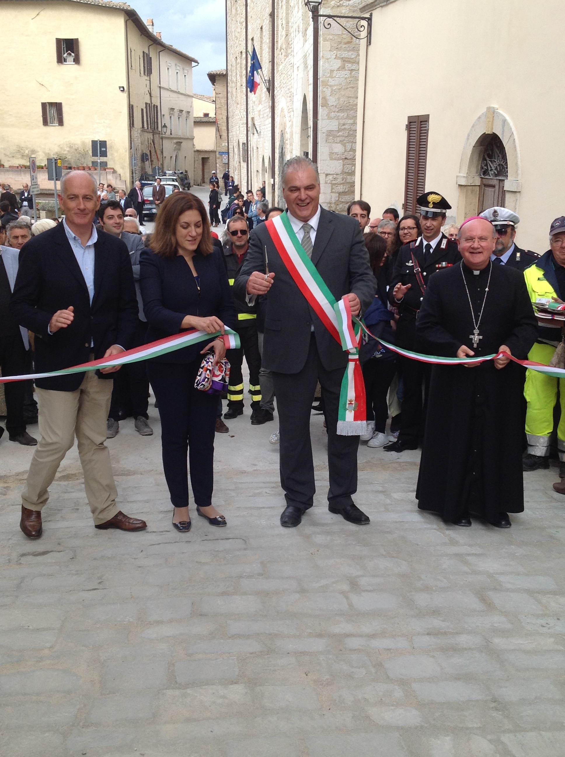 La festa – «Una giornata di festa perché ci si riappropria di un importante elemento del centro storico – ha detto il sindaco Giovanni Bontempi – dopo tanti anni poi il lavoro è eccellente, ma non è terminato. Abbiamo ancora bisogno della Regione, a cui dico grazie per quello che ha fatto e farà». Negli echi degli interventi del prefetto Gabrielli e della presidente Marini anche la vertenza Merloni, con una delegazione di operai presenti. «Il lavoro sta diventando la vera calamità», ha detto Gabrielli, che ha sottolineato come non esistano modelli di ricostruzione, ma l’Umbria è «un bell’esempio di come fare le cose senza finire in galera e non macchiando tutto con scandali». L’importante per Gabrielli, nell’uscita dalle emergenze, è la «capacità prospettica nell’affrontare i danni della gente e delle istituzioni». Dall’Umbria poi è importante apprendere che ci vuole tempo e caparbietà, ma «la Regione ha saputo mettere in campo un percorso di Protezione civile che ne fa un’eccellenza in un paese in cui uno degli sport migliori è la ricerca del capro espiatorio». «Questo territorio ha sofferto il terremoto e ora soffre la mancanza del lavoro, che va ricostruito», ha spiegato la presidente Marini illustrando i numeri della ricostruzione. A Nocera è stato speso mezzo miliardo di euro dei cinque totali della ricostruzione, dando origine a lavori di qualità, «grazie ai cittadini privati, che hanno cofinanziato gli interventi». Gioia per il momento dal vescovo Sorrentino, ma preoccupazione per gli operai Merloni, che anche il Papa aveva voluto incontrare ad Assisi, «Situazione drammatica ma minore visibilità delle altre crisi. Come mai poveri di serie A e di serie B?». Per Nocera un forte appello a stimolare investimenti di imprenditori, per far ripartire il centro storico.