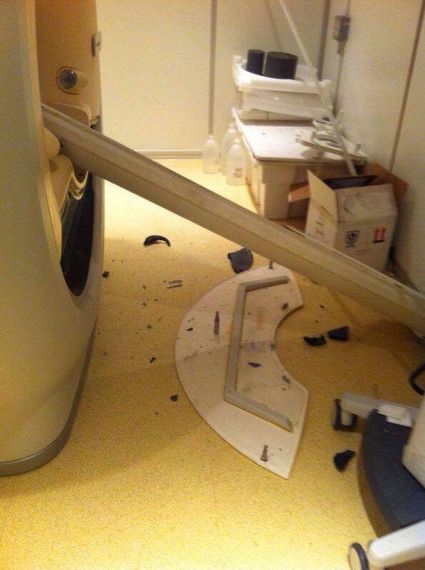 Un errore di distrazione – Un’immagine che sembra evocare un film di fantascienza quella cui ha assistito l’operatrice della ditta intenta a passare l’aspirapolvere nel locale dove si trova l’apparecchio per le risonanza magnetica. Probabilmente assorta nel suo lavoro di routine, la donna si sarebbe avvicinata troppo al macchinario della risonanza magnetica il quale, con il suo potente magnete, ha attirato tutto quello che si è trovato davanti. Compreso il bidone aspiratutto che è stato letteralmente inghiottito all’ interno del tunnel. Assieme all’aspirapolvere, sono stati risucchiati anche il cestello, le ruote, il filo e il tubo provocando danni per qualche decina di migliaia di euro, secondo quanto riferito dall’ospedale.