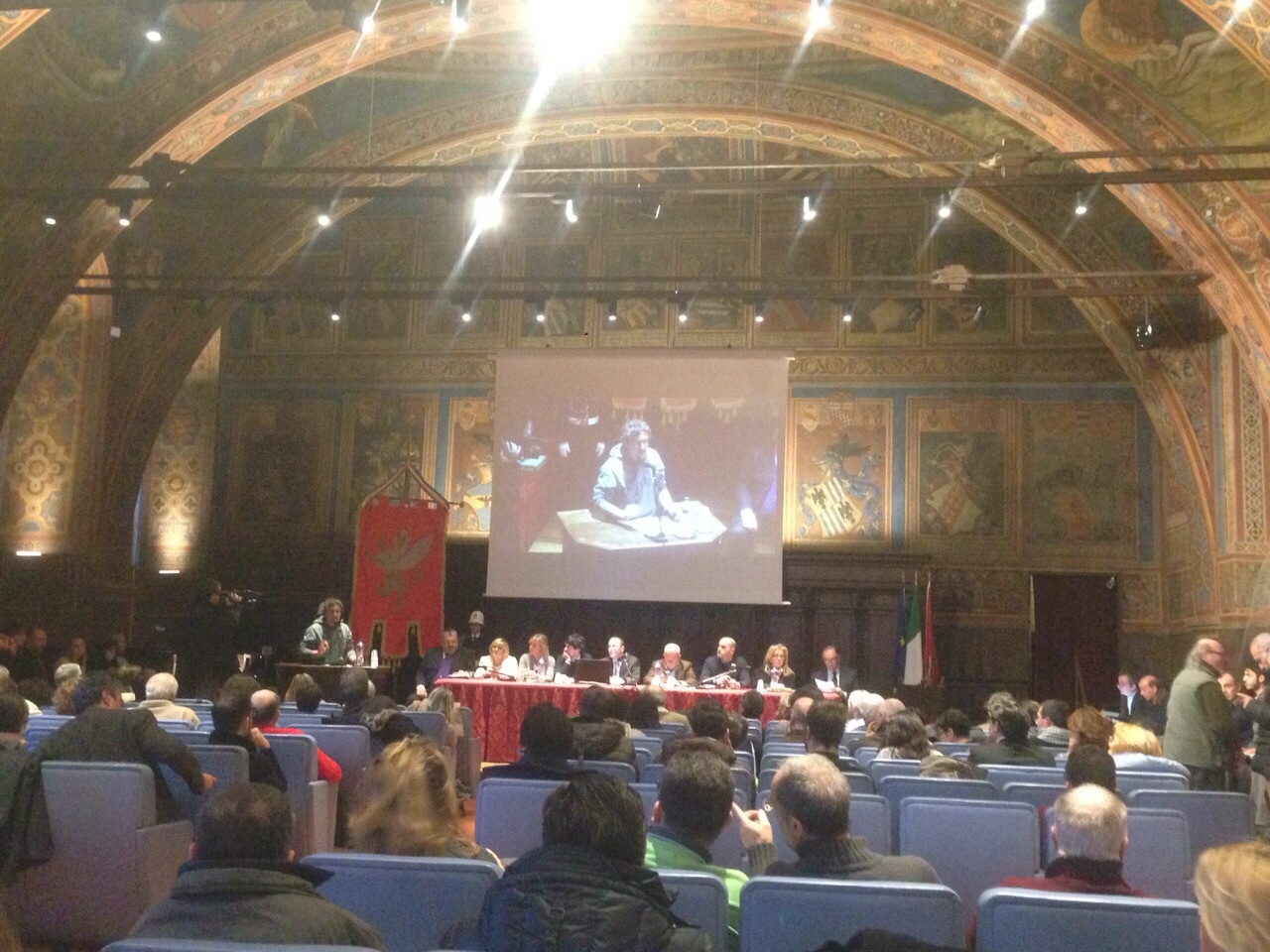 L’ingegnere Fabio Maria Ciuffini, rivolgendosi alla Giunta Romizi, chiede come sia possibile che si decida di consegnare la E45, patrimonio umbro frutto della lotta dei cittadini, a Vito Bonsignore (finanziere, costruttore e politico). In tema di politica e grandi opere, quindi Anna Rita Guarducci parla del progetto come dell’autostrada dalle larghe intese, voluta da destra come da sinistra e fa appello al buon senso della nuova amministrazione della città.