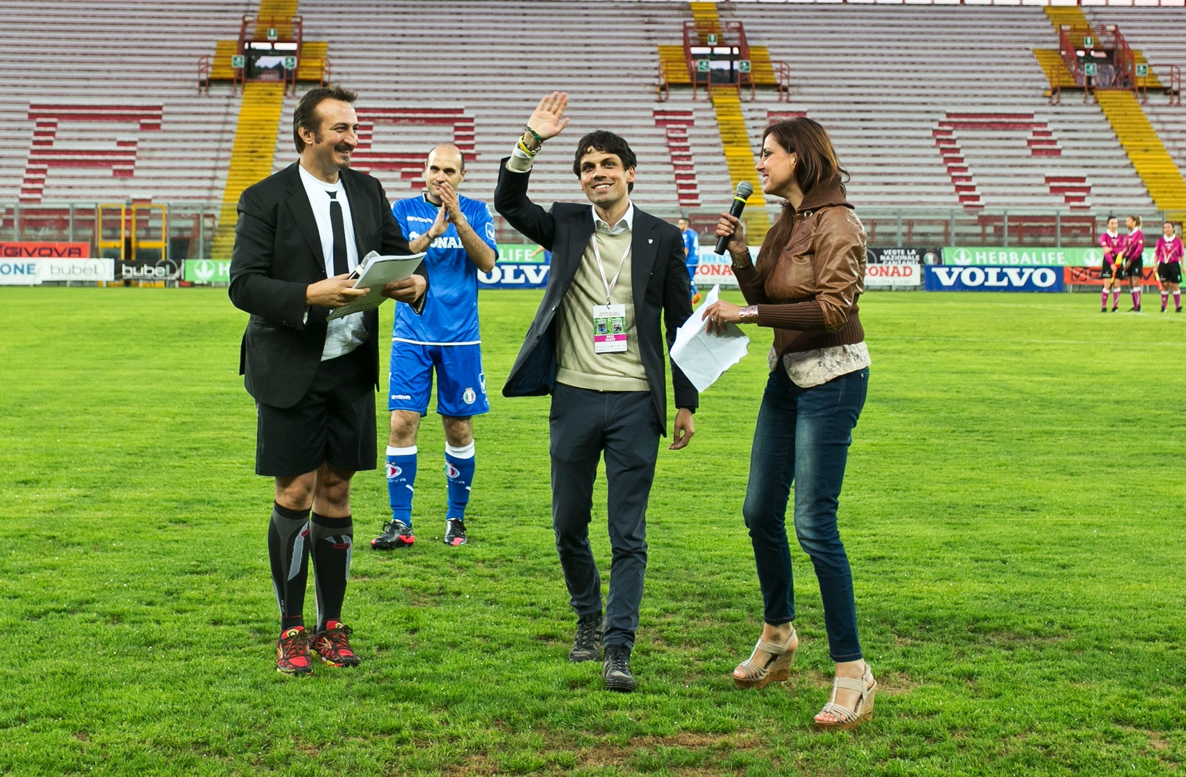 Indossavano la maglia della Nazionale Cantanti, guidata dal mister storico Sandro Giacobbe, il presidente Luca Barbarossa (attaccante), Luca e Diego dei Sonohra (terzino di sinistra e attaccante), Clementino e Rocco Hunt, Marco Masini, Neri Marcorè, Marco Ligabue, Pierdavide Carone (portiere), Paolo Belli (difensore centrale), Enrico Ruggeri (regista), Renzo Rubino, Vincenzo Capua, Andrea Perroni (che ha messo a segno l’unico goal per i cantanti), Vincenzo Guasti, Antonio Mezzancella, Jack Sintini (Associazione Giacomo Sintini), Leonardo Cenci (Associazione Avanti Tutta), Andrea Rivera, Hervè Olivetti, Peppe Stefanelli ed Enzo Proietti, (musicisti umbri della Paolo Belli Big Band); presente il sindaco di Perugia Andrea Romizi, che all’ultimo ha deciso di cedere la maglia all’assessore allo sport Emanuele Prisco.