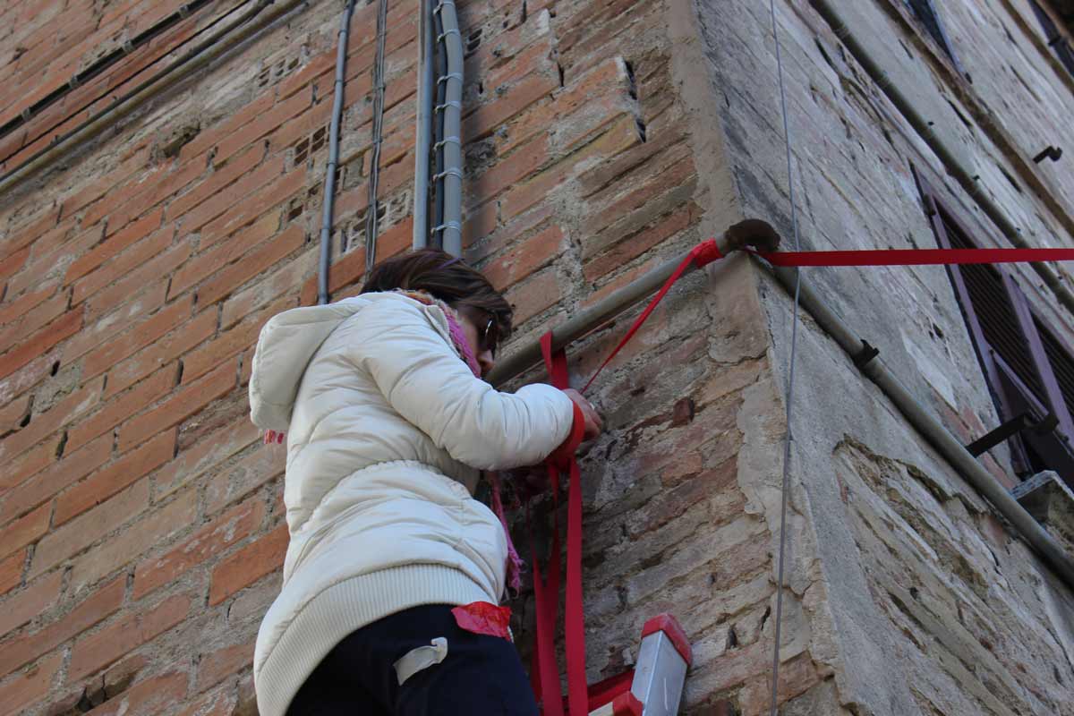 L’arrivo domani mattina – Nonostante il vento, il freddo e la pioggia di questi ultimi giorni Antonio e il suo team continuano a far camminare questo nastro rosso tra i vicoli della città. Giovani, pieni di energia e con le mani consumate dal freddo, domani mattina concluderanno la prima parte di questa avventura con una grande festa assieme alla città al Cassero di Porta Sant’Angelo. Convinti che “se riusciremo a lasciare qualcosa dietro le nostre spalle, sicuramente nasceranno fiori”.