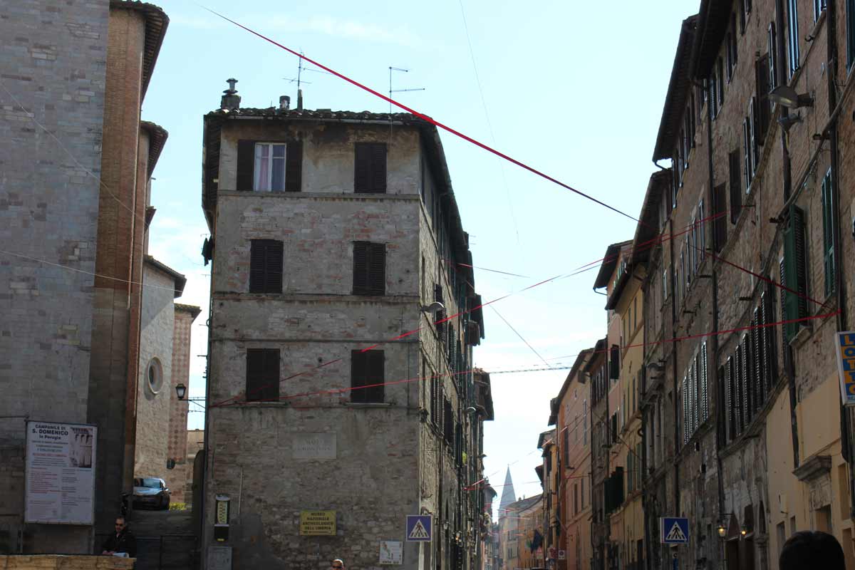 Il percorso – Un viaggio a zig zag attraverso i vicoli e le piazze della città. Un percorso, lungo 3 chilometri, per riprendere quel filo che a tratti è sembrato smarrito. Domani mattina, domenica 8 marzo, arriveranno al Cassero di Porta Sant’Angelo. Da un’estremità all’altra del centro per ispirare una ricomposizione delle varie esperienze che costellano Perugia. Un filo rosso come simbolo della necessità di tornare a legare insieme tutta la città, gli stranieri con i residenti, la politica con i cittadini, le associazioni con i commercianti. Rimbalzando da un balcone all’altro, Riprendere il filo è “un irripetibile occasione di dialogo”. Non foss’altro che per strada sono stati in molti a fermarsi e a interrogare Antonio, arrampicato sulla scala, nell’intento di fermare il filo a una finestra.