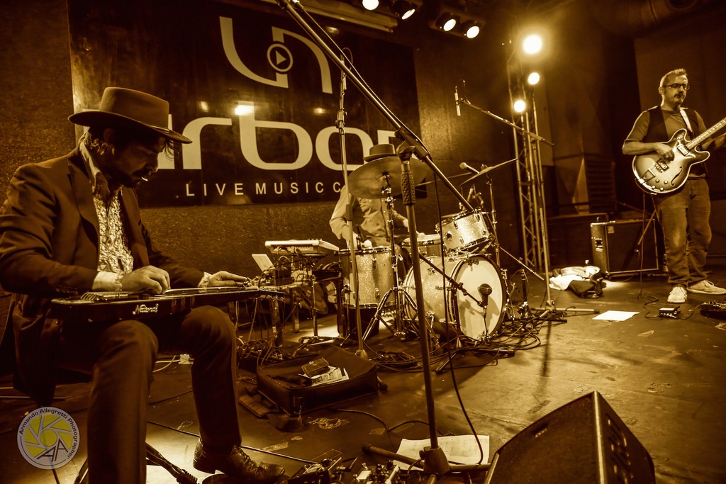 La band – L’immaginario è ricchissimo di sfumature, proprio come il tramonto di uno di quei film western che i tre tanto amano e che da subito ha fornito lo spunto principale attorno a cui legarsi: ci sono le atmosfere morriconiane dei film di Sergio Leone, ma pure delle decine di pellicole minori che hanno segnato un’irripetibile stagione cinematografica italiana. E poi il rock del deserto, il country, il folk, il jazz trasversale, il blues ovviamente e persino influenze surf.
