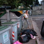 Buste piene della spazzatura sparse sul marciapiede. Dopo segnalazioni alle autorità competenti, a ripulire la zona sono stati alcuni soci dell'associazione di quartiere Fontivegge Insieme