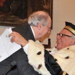 Il Rettore Moriconi ha quindi consegnato al professor Dujon la pergamena, il libro (simbolo del sapere), l'anello (a significare la congiunzione del laureato con la disciplina), il bacio accademico, il tocco e la toga dottorale