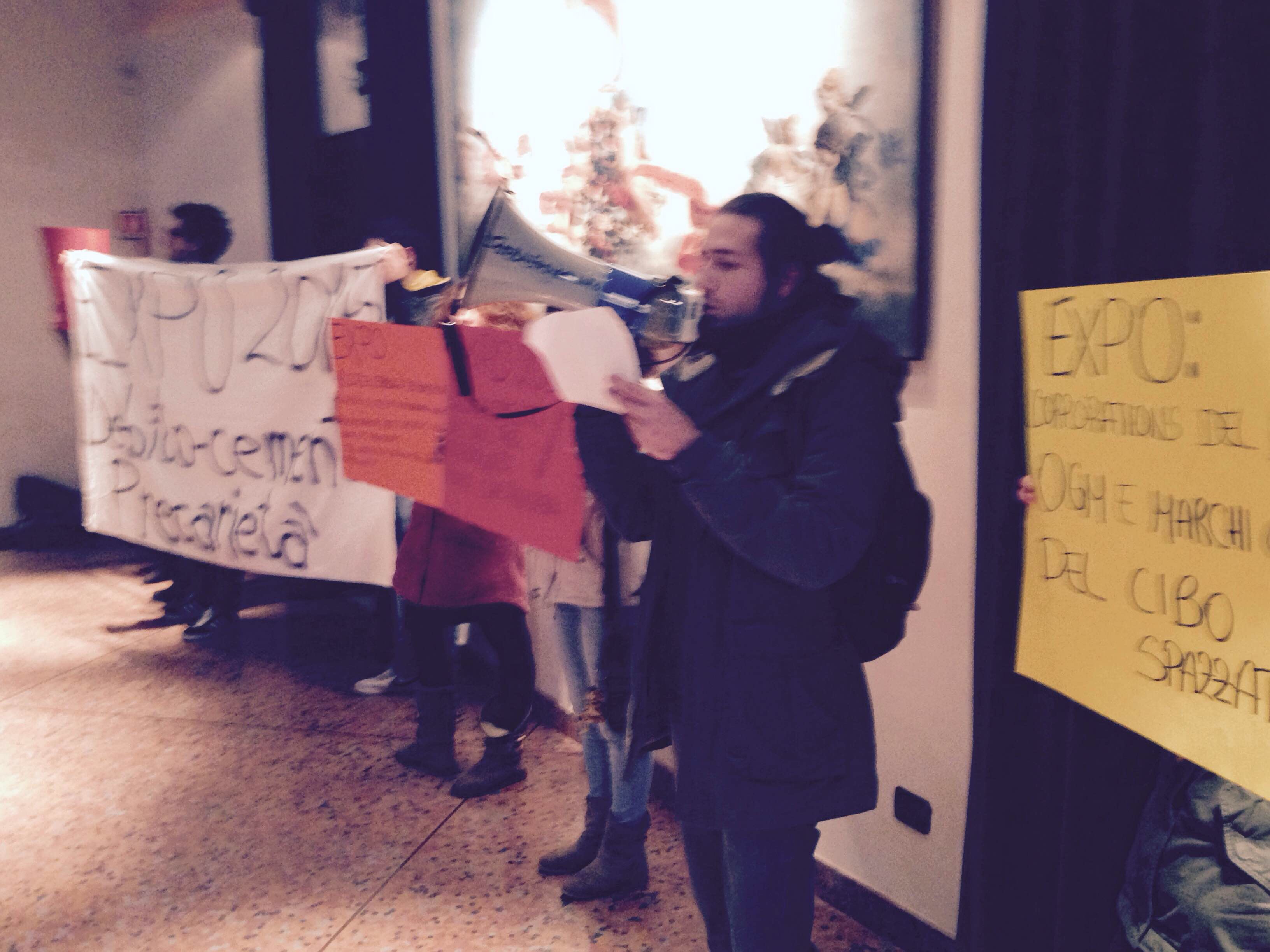La manifestazione milanese rappresenterebbe infatti l’occasione per speculatori e potenti di poter calare dall’alto sulla città mostri di cemento e cristalli,manca che nessuno si insospettisca sulla loro utilità. “Ci chiediamo – dicono i manifestanti – se l’Università di Perugia abbia preso in considerazione i veri temi intorno ai quali ruota l’esposizione. Ci chiediamo se il fantomatico benessere in questione sia solo per i soliti pochi o sia realmente di tutti. O forse tutto questo andrà a vantaggio dei 36mila volontari su 70mila lavoratori necessari al grande evento abbindolati dalla promessa che un giorno, forse, tutto questo farà curriculum”. “Ci aspettiamo – continuano – una presa di posizione chiara da parte dell’Università in merito della questione di Expo 2015. Sarà netta la nostra opposizione rispetto a tutte le iniziative che dentro e fuori l’università si svolgeranno”.