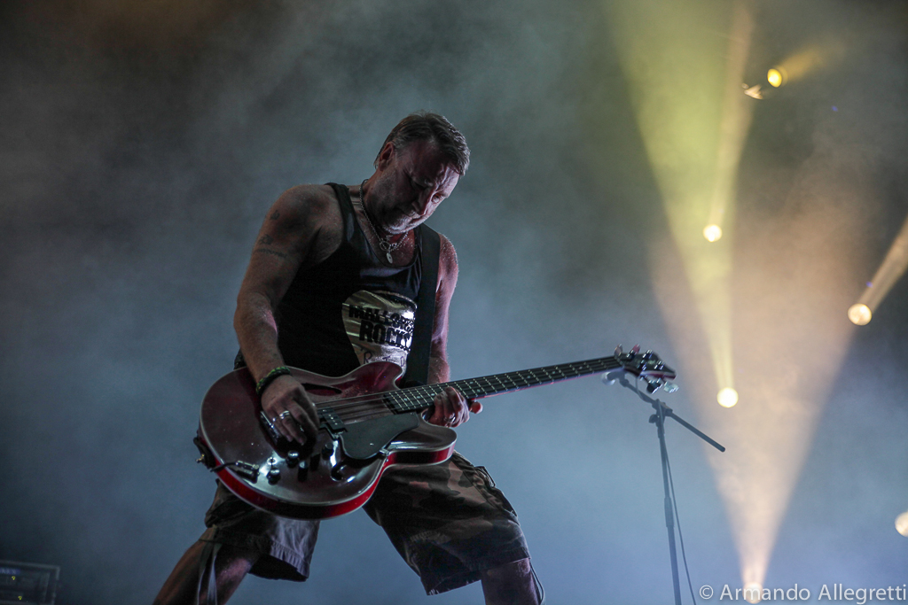 Il concerto. Prima di Peter Hook sul palco di Massa Martana gli Elephant 12, una band composta da tre ragazzi nati, musicalmente parlando, nella East London. Un mix di Electro, Rap e Rock che danno vita ad un AfroPunk in costante perfezionamento e alla ricerca di nuove melodie. Si abbassano le luci, il sole tramonta ed è il momento di Peter Hook e il suo gruppo (con tanto di figlio al basso ndr) un mix di canzoni che vanno dalle dediche ai Joy Division al continuo richiamo ai New Order. Un crescendo di emozioni che culmina con l’esecuzione di “Love will tear us apart” e con Peter Hook che scende dal palco, lancia la sua maglietta al pubblico e a torso nudo saluta e se ne va.